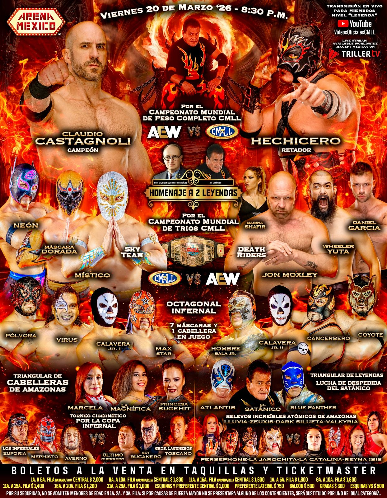 El Satánico se retira de la lucha libre en Homenaje a Dos Leyendas y lo hará enfrentando a Atlantis y Blue Panther. “El Número Uno” se despide de los encordados ante dos de sus grandes rivales. #2LeyendasCMLL#CMLL#LuchaLibre#DeathRiders#Místico#AEW