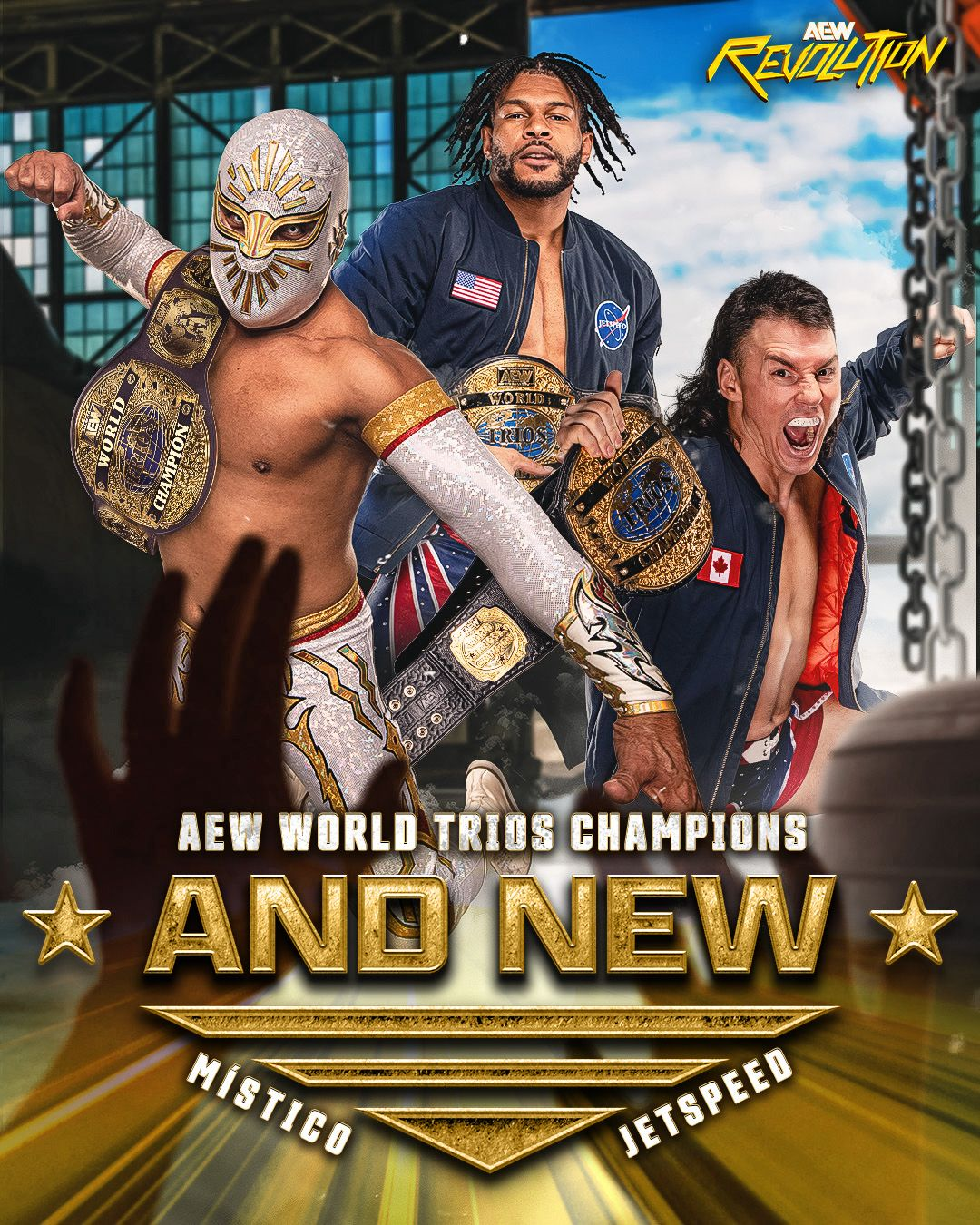 Hace unos minutos, en AEW Revolution, Místico se coronó Campeón Mundial de Tríos de AEW junto a Mike Bailey y Kevin Knight, tras derrotar a Kazuchika Okada, Kyle Fletcher y Mark Davis.