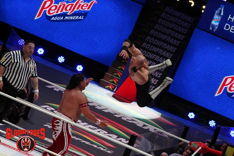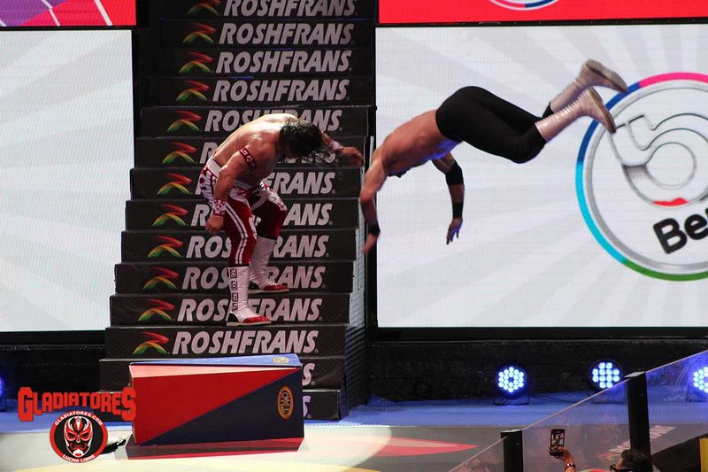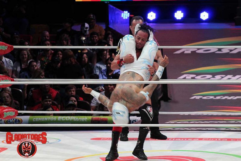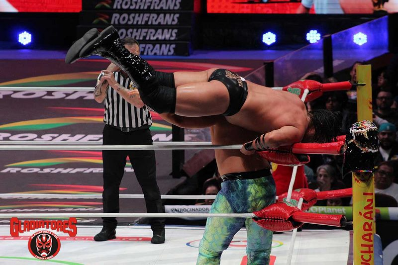Desde el inicio, Claudio mostró su lado rudo al sorprender al lagunero en lo alto del escenario antes de llegar al ring. Durante más de cinco minutos, Último Guerrero buscó la manera de responder a la ofensiva del campeón, pero cada intento fue neutralizado por Castagnoli.