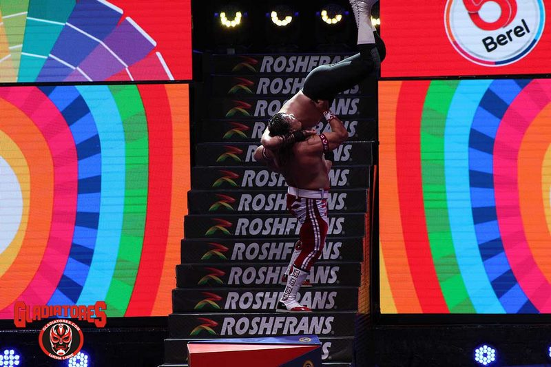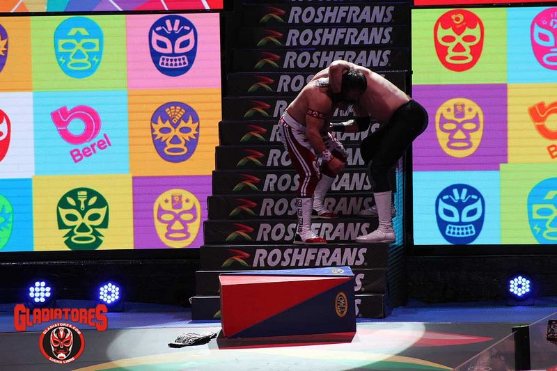 Mientras en la primera lucha  en match relámpago Full Metal fue superado por Shockercito a los 9 minutos con 11 segundos.