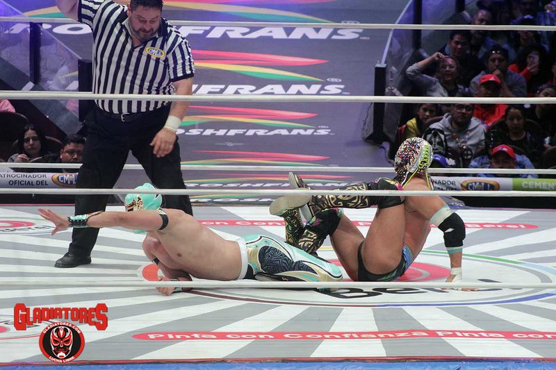 En la lucha semifinal, en match relámpago, Titán fue superado por Máscara Dorada a los 9 minutos con 2 segundos. El duelo fue parejo y con constantes movimientos aéreos y espectaculares.